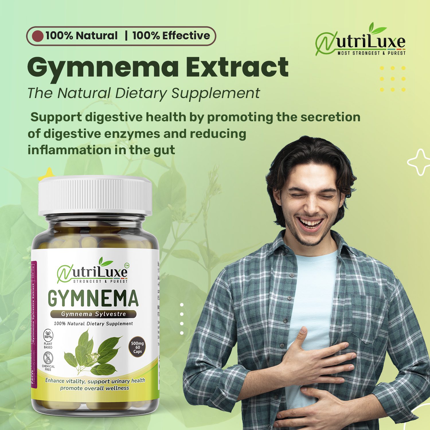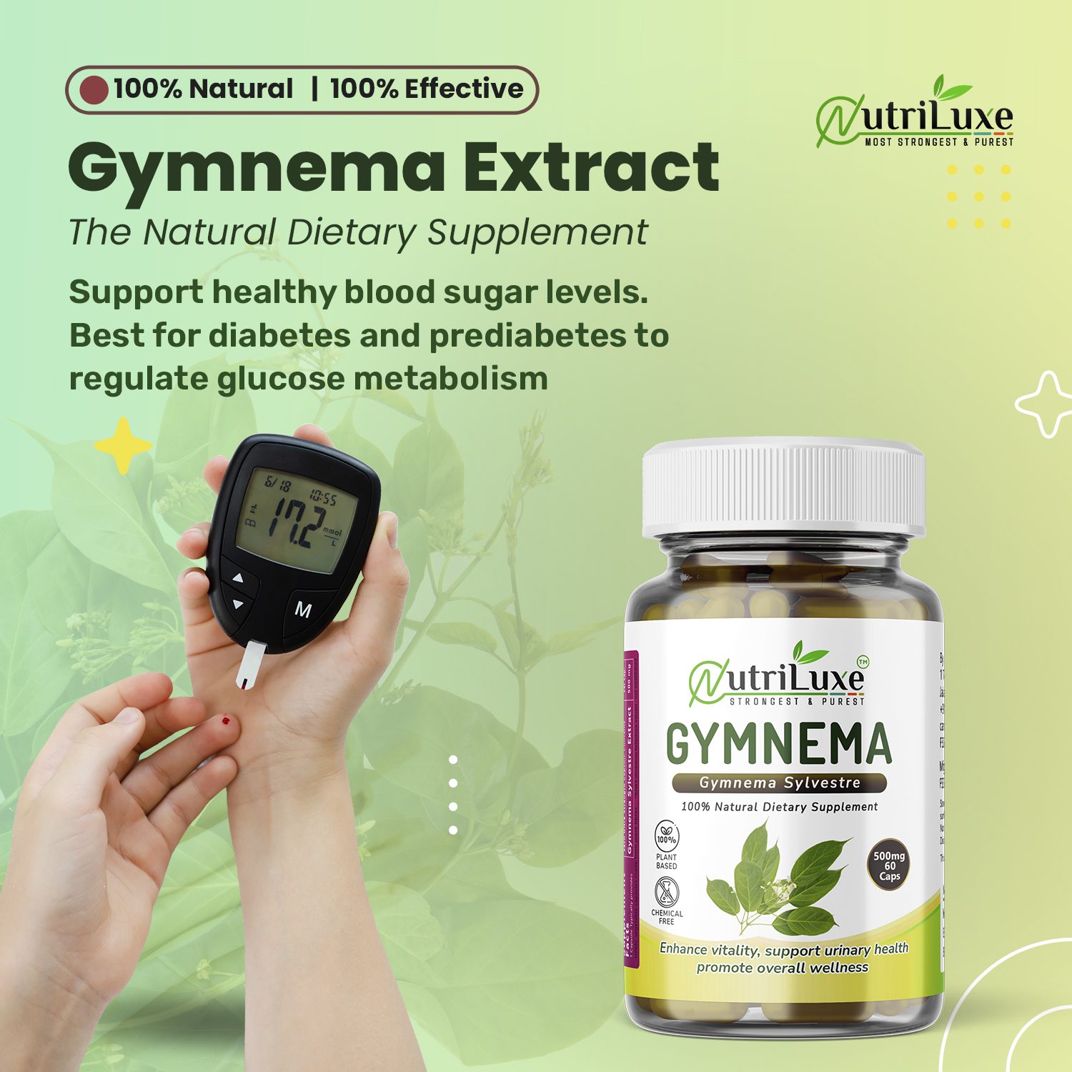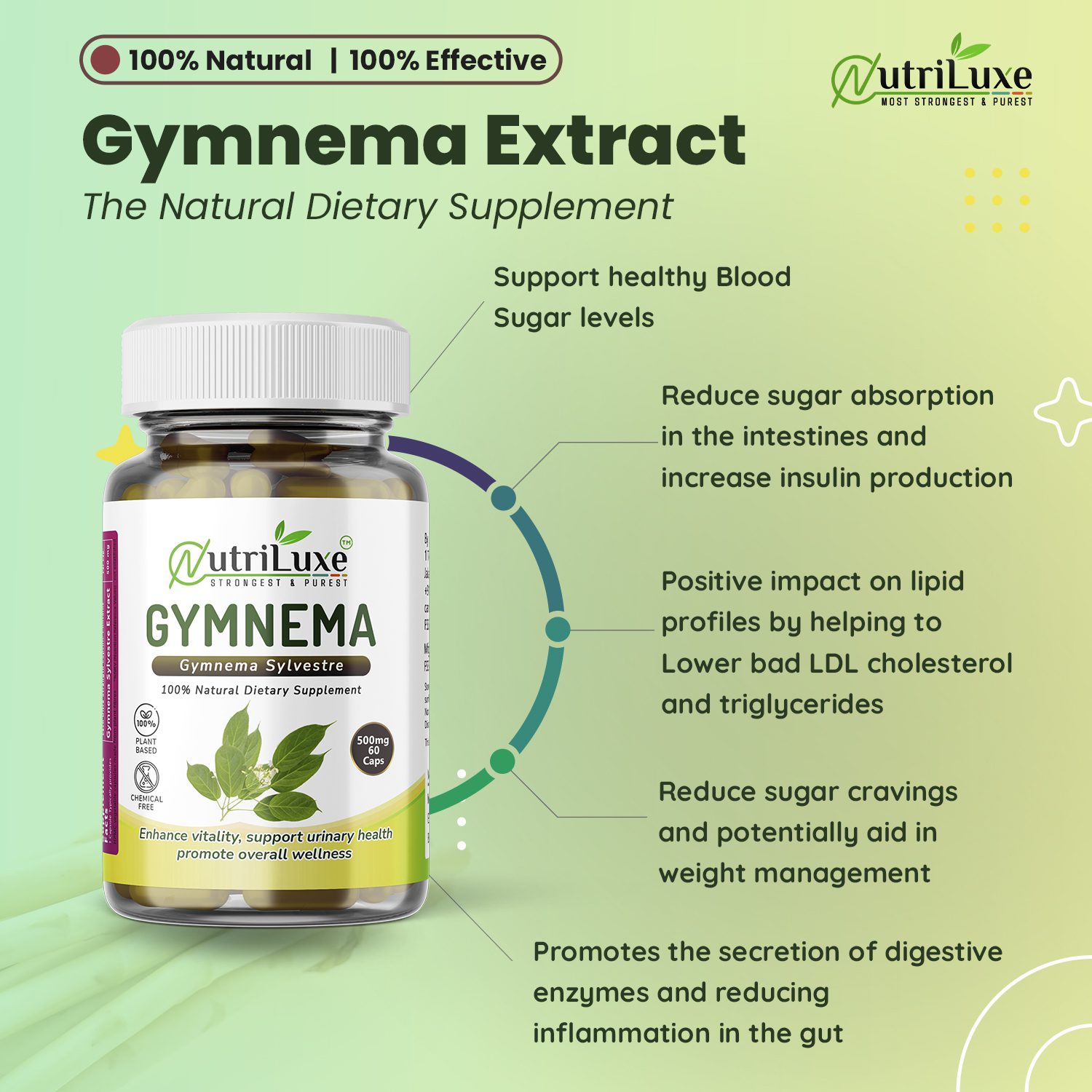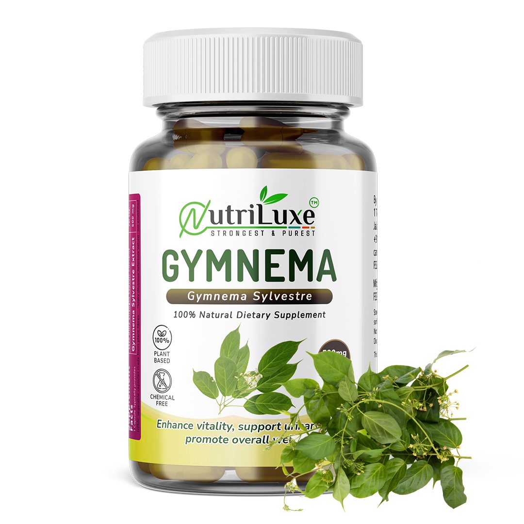Nutriluxe Gymnema Extract Capsules (Organic) are thoughtfully formulated using premium-quality Gymnema sylvestre, a revered herb in Ayurveda popularly known as “Gurmar”, meaning “destroyer of sugar.” Used traditionally for centuries, Gymnema is valued for its role in supporting healthy blood glucose levels, metabolism, and sugar management.