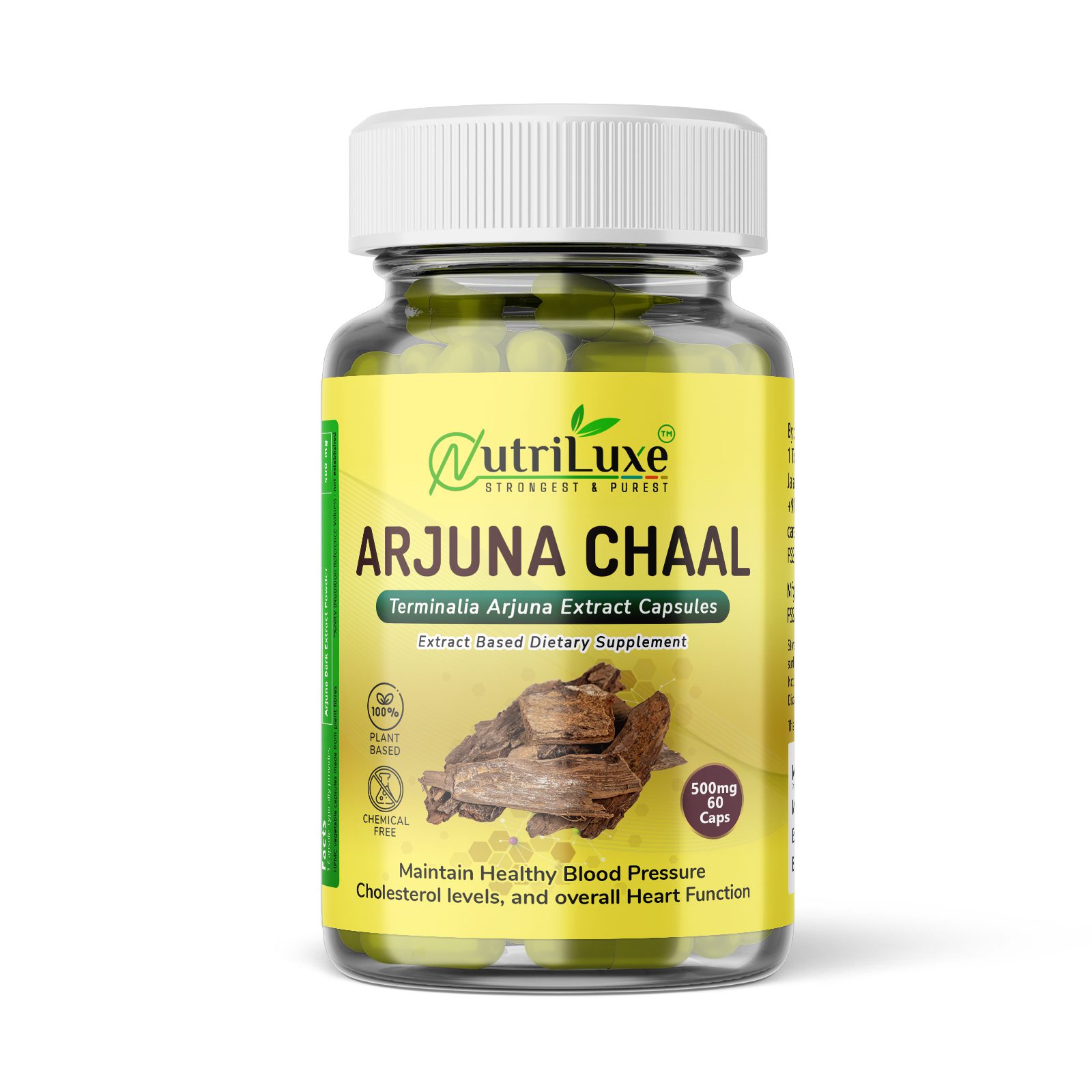 Nutriluxe Arjuna Chaal Extract Capsules bring you the goodness of this traditional herb in a modern, easy-to-consume capsule form, ensuring purity, potency, and consistency with every dose.