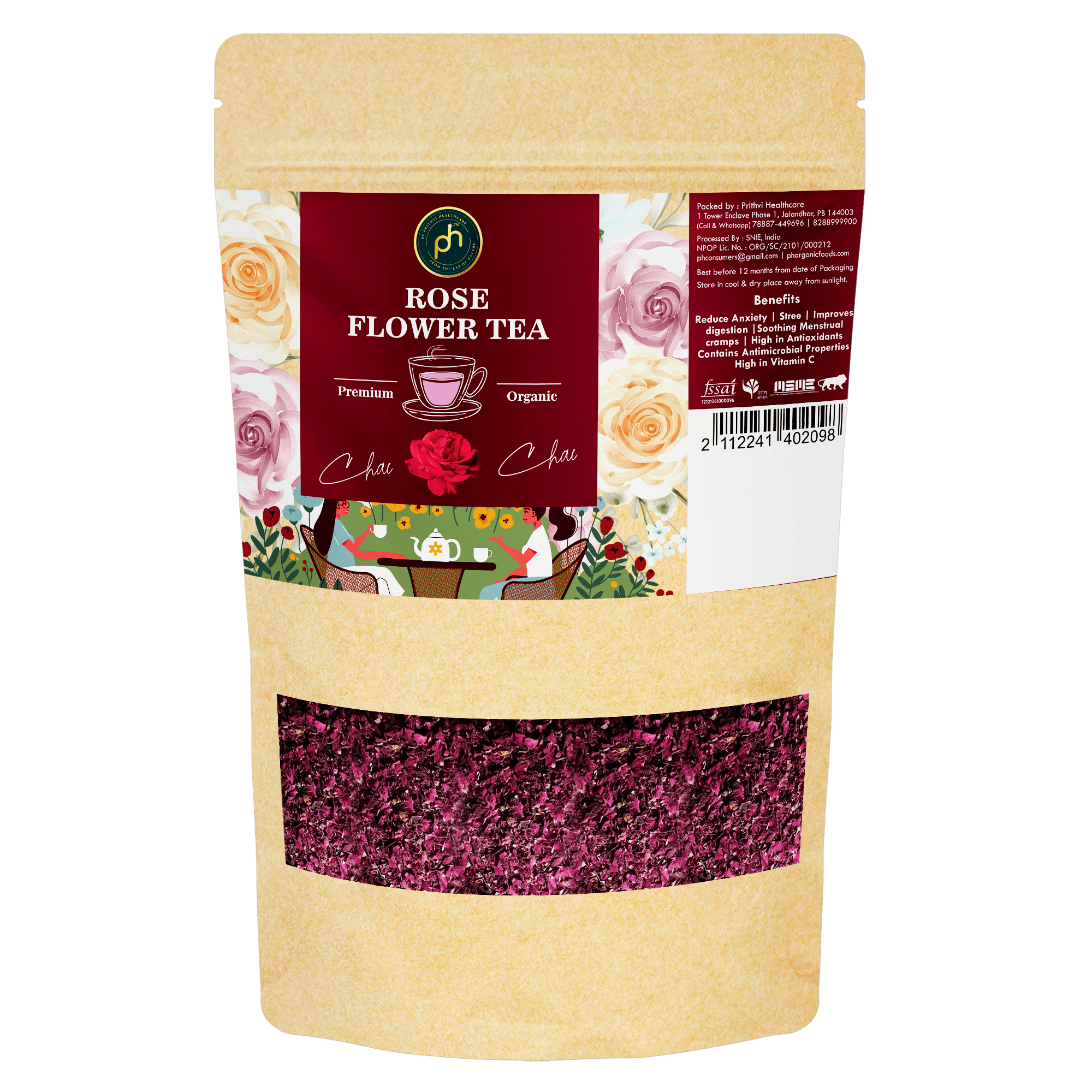 Organic Rose Flower Tea is a caffeine-free herbal tea made from dried rose petals. It has a light, floral flavor and is known for its calming effects, digestive benefits, and skin health support. It’s easy to prepare by steeping the petals in hot water for 5–10 minutes.