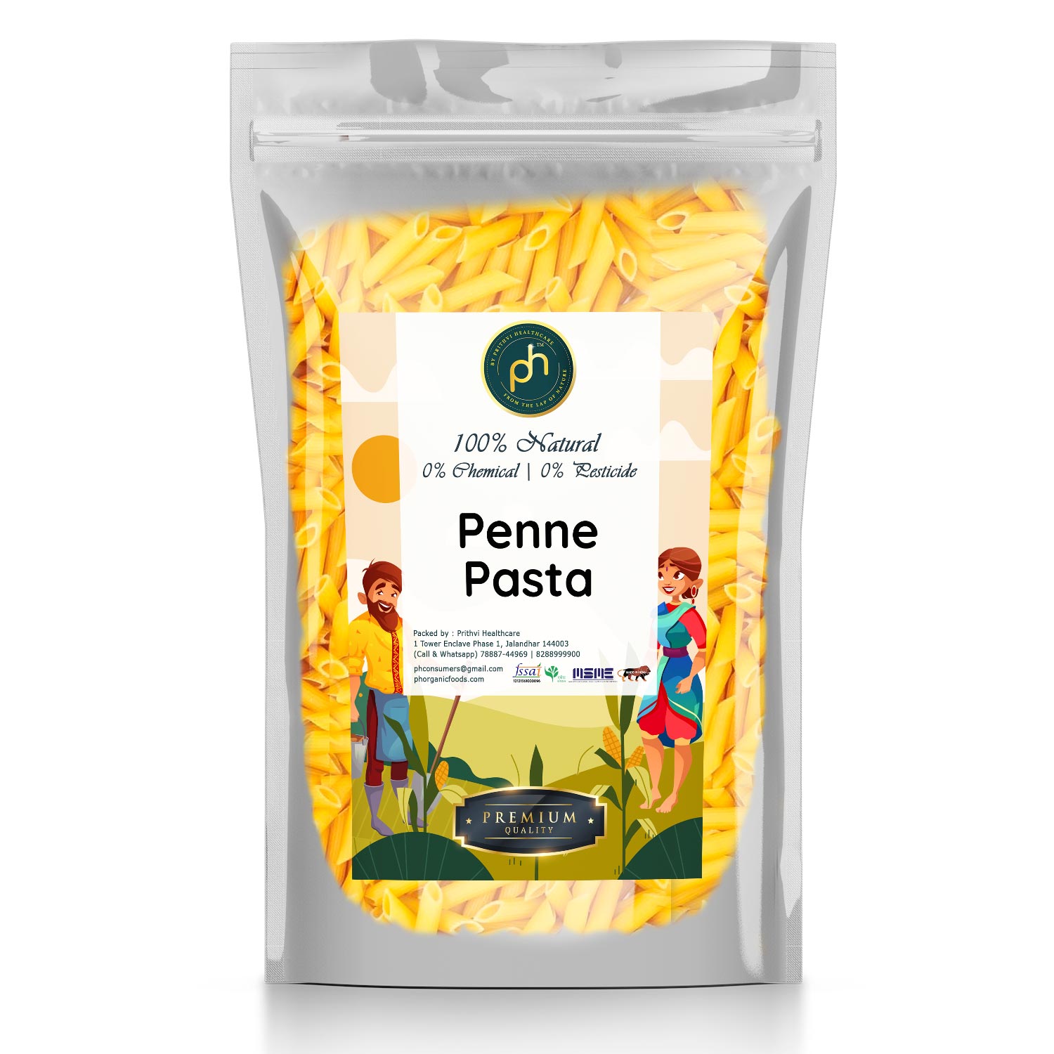 Organic penne pasta is made from organically grown wheat (usually durum wheat), cultivated without synthetic pesticides or fertilizers.