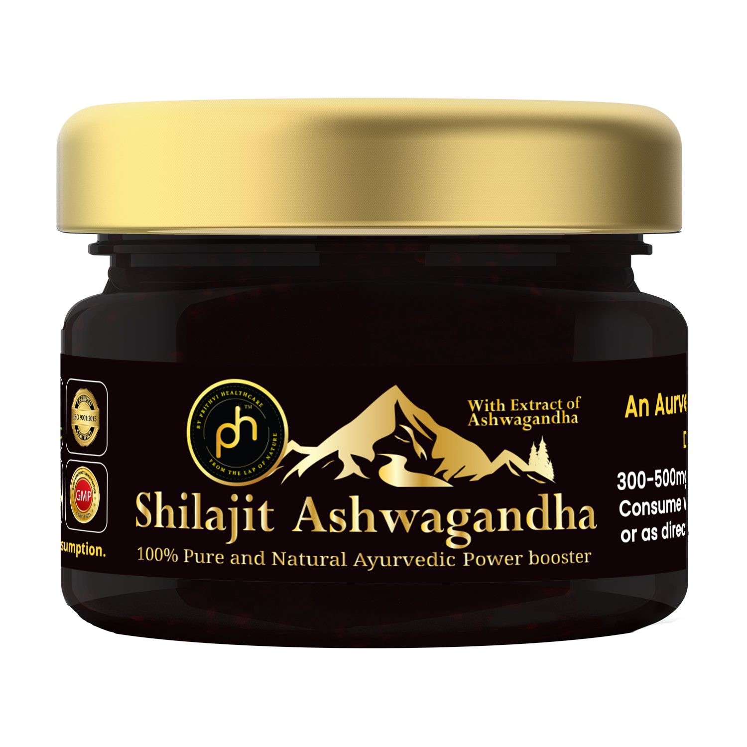 PH Shilajit Resin with Ashwagandha is a powerful Ayurvedic wellness formulation designed to restore strength, enhance vitality, and support holistic well-being. Carefully sourced from the pristine Himalayan ranges, our Shilajit resin is traditionally purified and blended with certified organic Ashwagandha extract, making it a potent natural supplement for today’s demanding lifestyle.